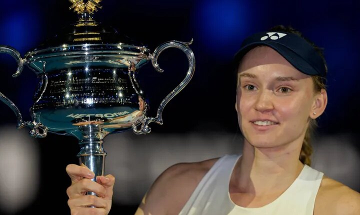 The Kazakhstani fifth seed overcame a second-set blip against the world number one to triumph 6-4 4-6 6-4 at the Rod Laver Arena and claim her second Grand Slam title after Wimbledon 2022.